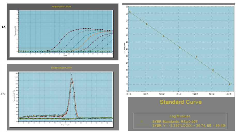 a- Amplification plot of the serially 10 fold diluted plasmid DNA;