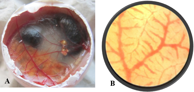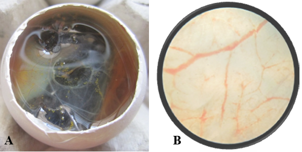 A) Control Egg; B) Control Egg- Microscopic view- 5X, No. of branch points = 42
