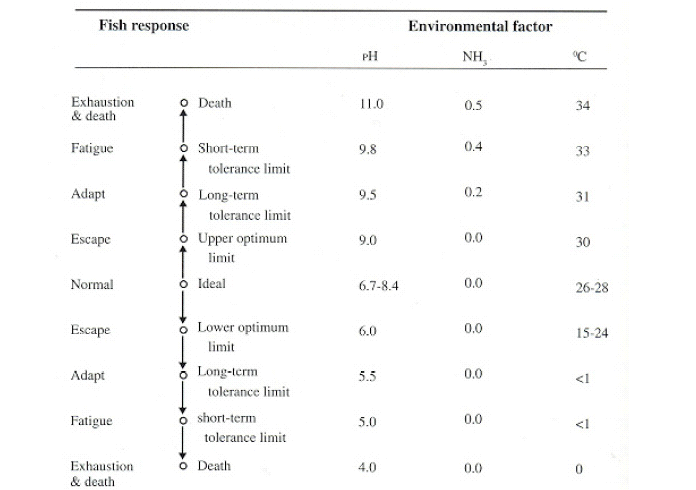 Generalized illustration of how warm water freshwater fish might respond to specific environmental factors under certain conditions