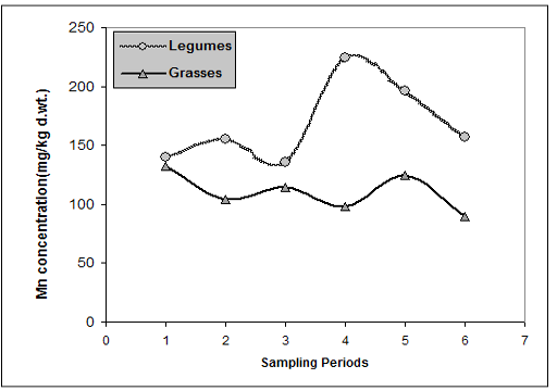 Levels of Mn in legume and grass forages