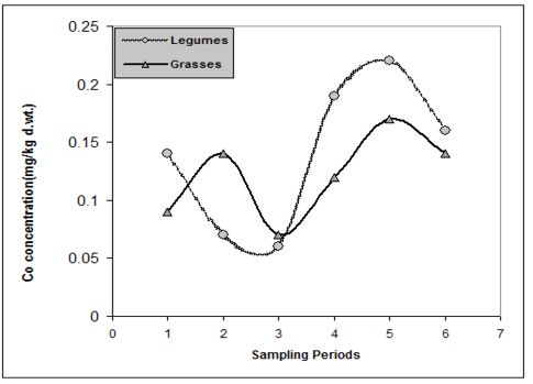Levels of Co in legume and grass forages