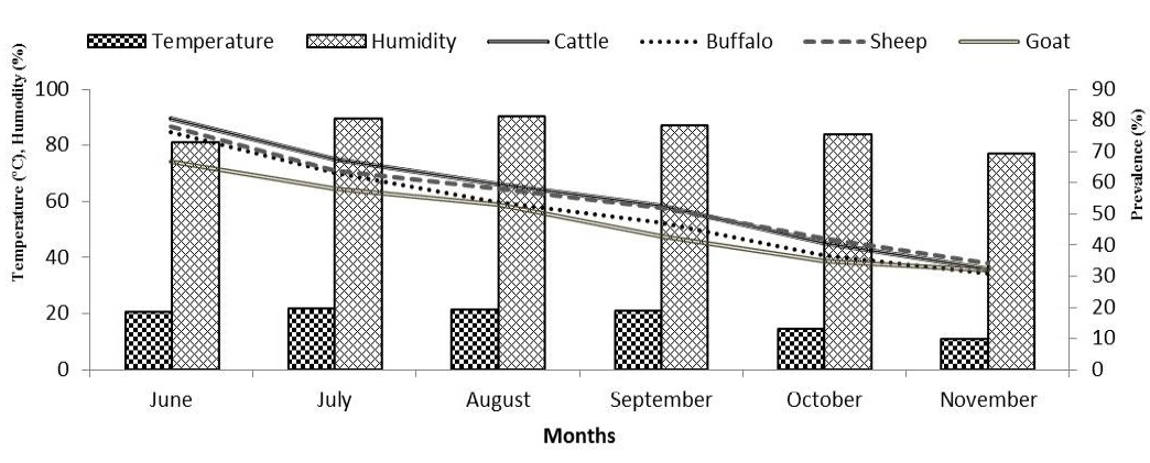 Monthly prevalence of tick infection livestock species in association with metrological data of Tehsil Hajira, Rawalakot, Azad Kashmir