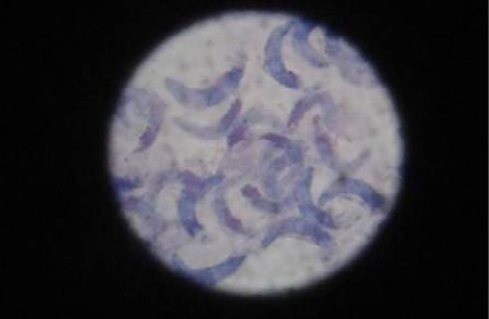 Gab chromatid infected ewe (Arrows) (acridine orange stain x100)