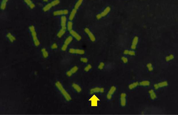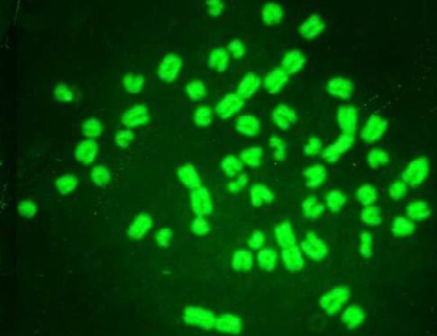 Normal chromosome in control group of ewe (acridine orange stain x100)