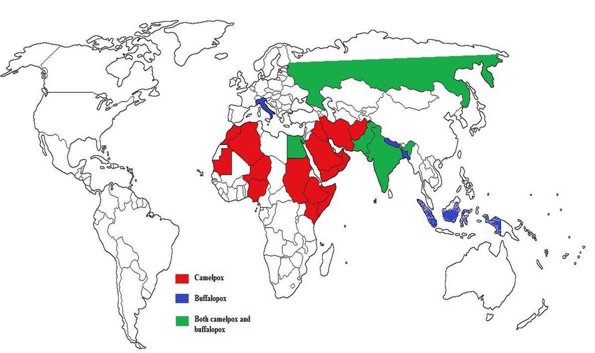 Epidemiology and geographic distribution of camelpox and buffalopox infection in the world