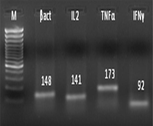 RT-PCR products of β-actin, IL2, TNFα and IFNγ resolved in 2% agarose gel