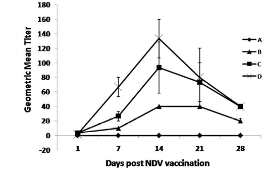 Specific NDV-Hemaaglutination inhibition Ab responses post NDV vaccination and treatment with OEO