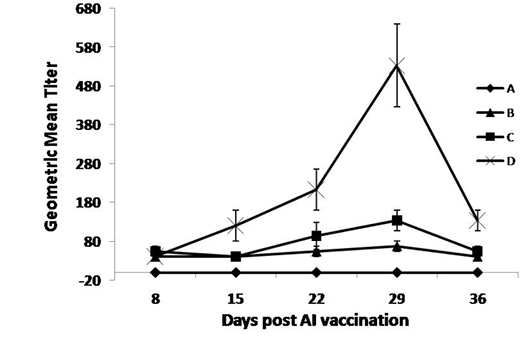 Specific AI-Hemaaglutination inhibition Ab responses post AIV vaccination and treatment with OEO