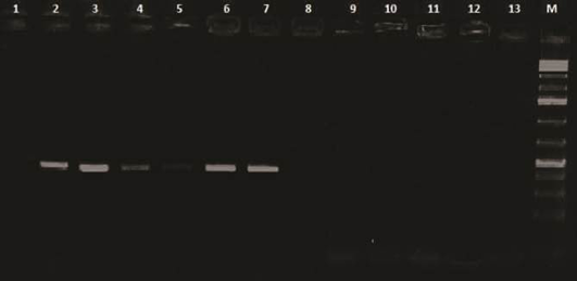 PCR products (418 bp) of amplified CAV-DNA extracted from tissues of diseased chicks