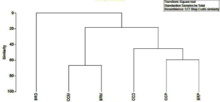 Similarity between the proximal, middle and the distal mangrove zones in Carbyn’s Cove and group average