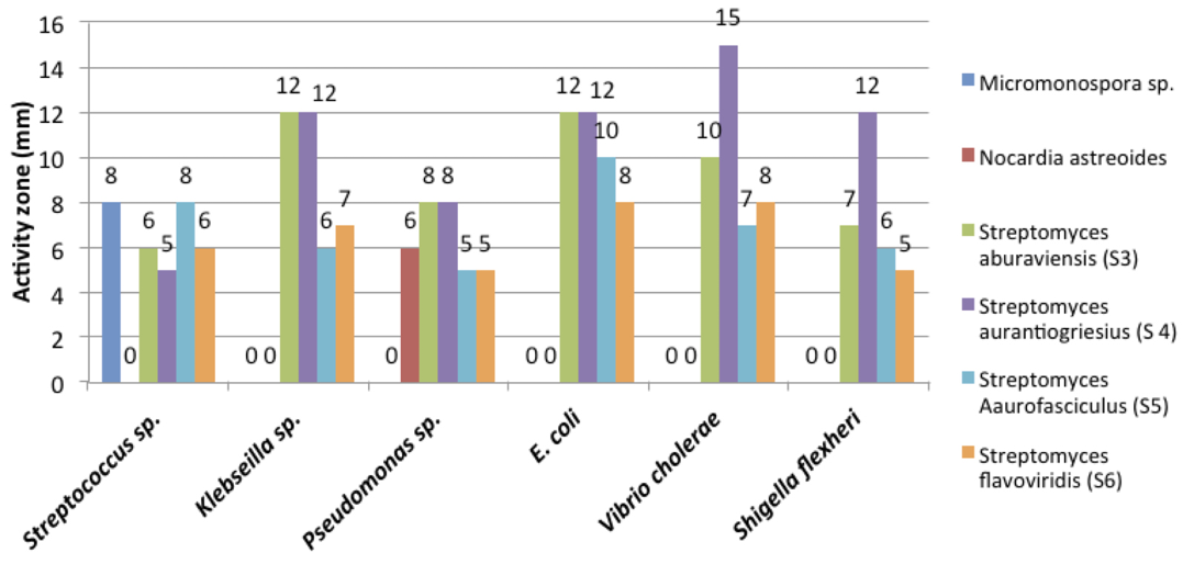 Antimicrobial activity of the isolates (zone of inhibition in mm)