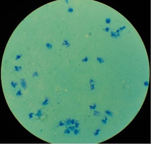 Microscopic image of Somatic cell count showing epithelial cells and neutrophils and monocytes
