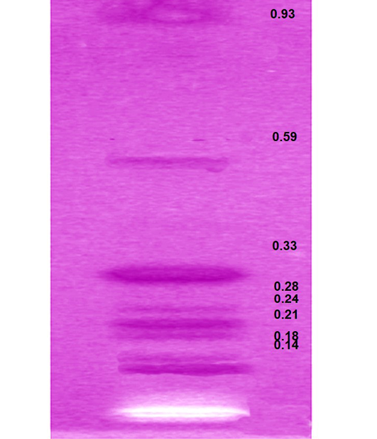 HPTLC plate showing the developed bands of ethanolic extract of B. spectabilis and their respective Rf values