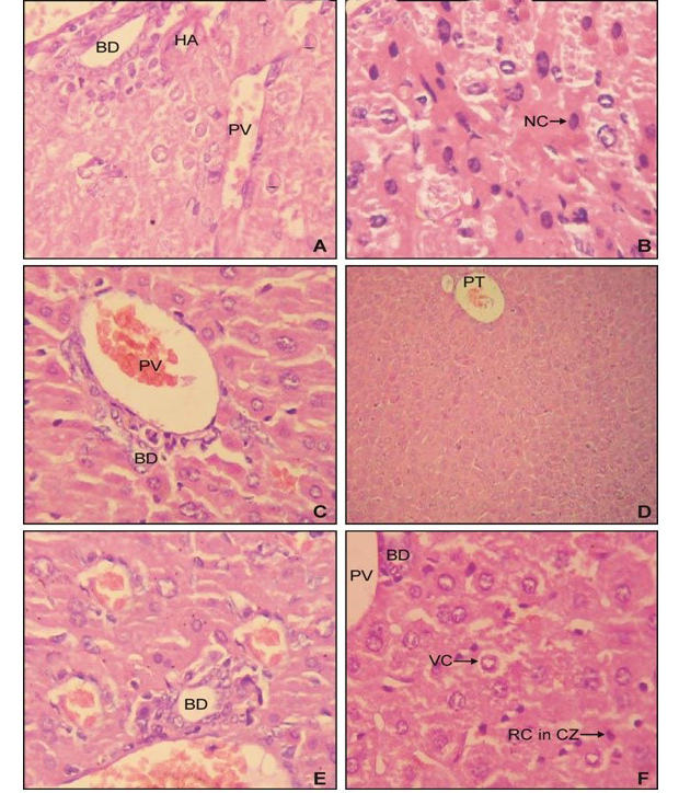Section of liver of male Swiss albino mice at 400x magnification