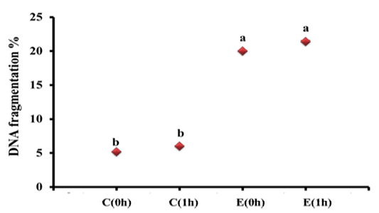 DNA fragmentation % in heart of rats from different groups