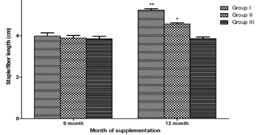 Effect of ASUMMB supplementation on staple/fiber length of pashmina goats
