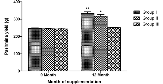Effect of ASUMMB supplementation on pashmina yield
