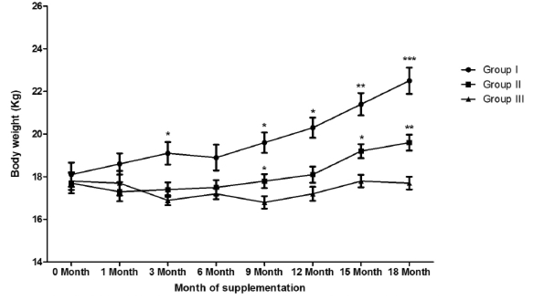 Effect of ASUMMB supplementation on body weight of pashmina goats