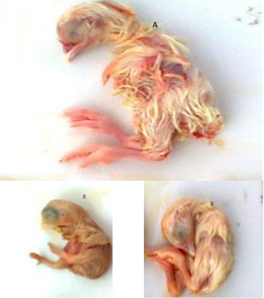 Gross changes in chicken-embryos caused by IBV at 18 days of age