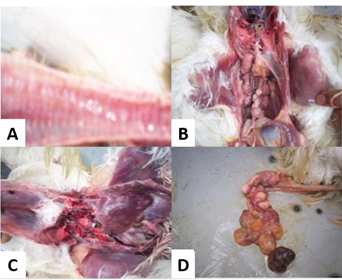 Post-mortem lesion in diiferent organs of chicken caused by infectious bronchitis virus