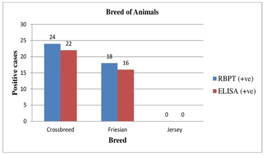 Sensitivity of RBPT and ELISA towards breed
