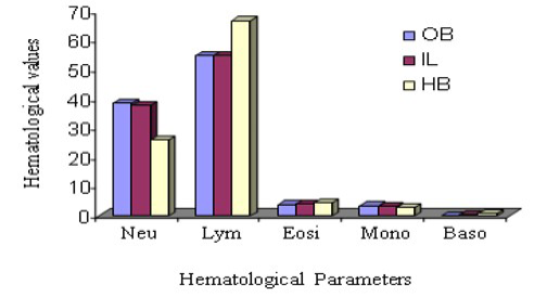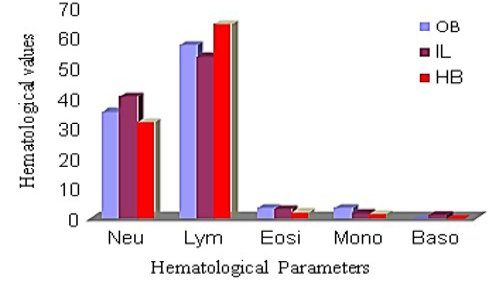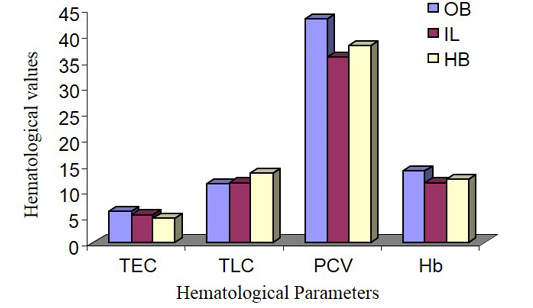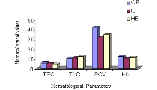 TEC, TLC, PCV and Hb of female Olive baboon, Indian langur and Hamadryan baboon