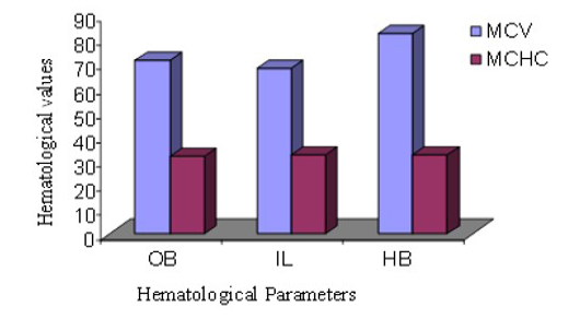 MCV and MCHC of female Olive baboon, Indian langur and Hamadryan baboon