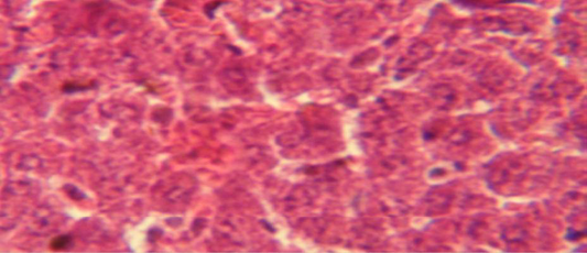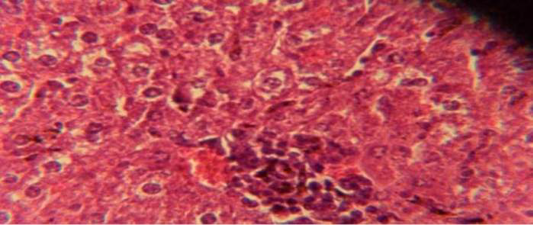 Histological section in liver of treatment group with ethambutol + extract showing aggregation of mononuclaur cell in liver parenchyma and proliferation of kupffer cell