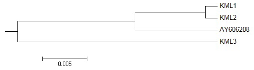 Dendrogram of ompA gene sequences of different isolates of R. anatipestifer depicting the relationship between each isolate and that of database sequence AY606208