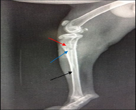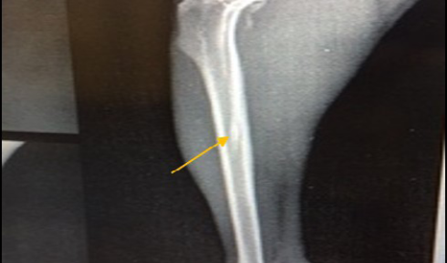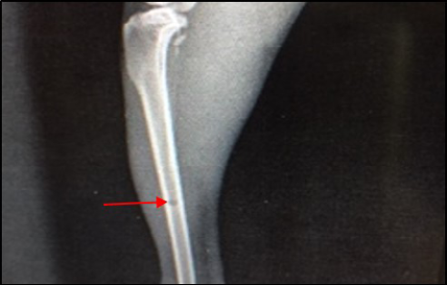 Site of operation, shows mediolateral view of the right tibia in non-infected group 21 days post-operatively, the hole had disappeared completely (healed, ML view)