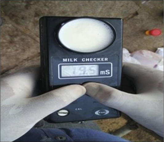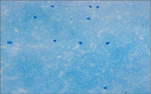Microscopically mastitis infected milk showing abundant inflammatory cells in Newman’s stain X 200