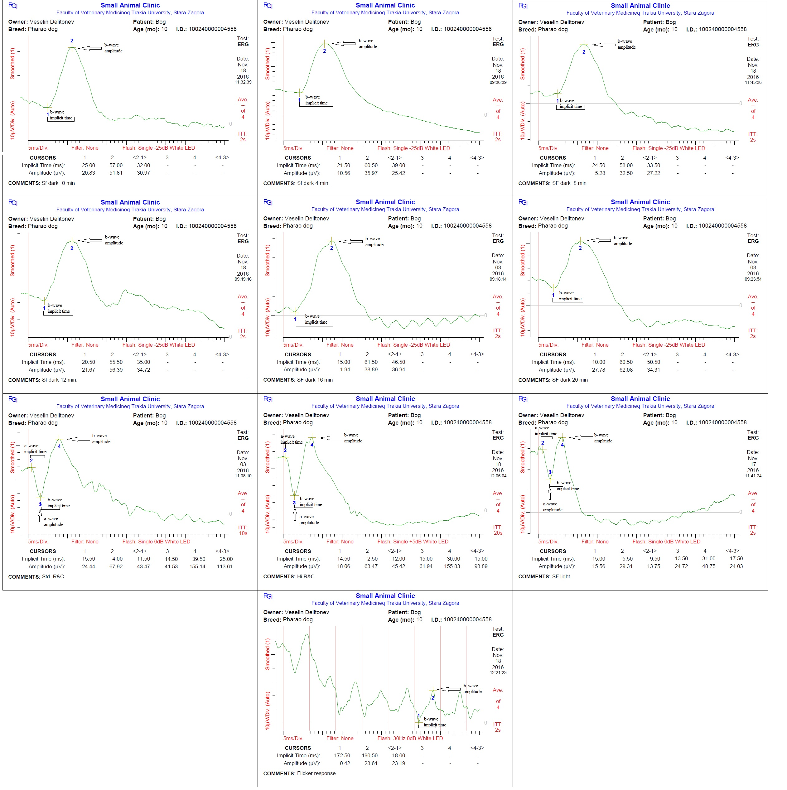 Representative waveforms from a dog in the study during individual ERG tests.