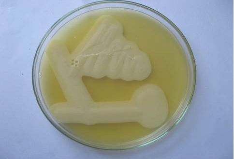 Lecithinase activity of C. perfringens in egg yolk agar after 24 hours of growth. Streaks showing opalescence production around C. perfringens.