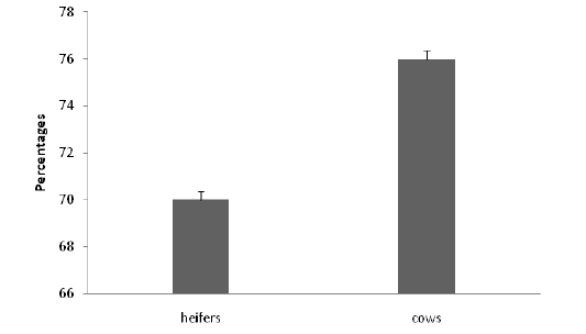 The pregnancy rate in cows and heifers after injection of prostaglandin F2 α