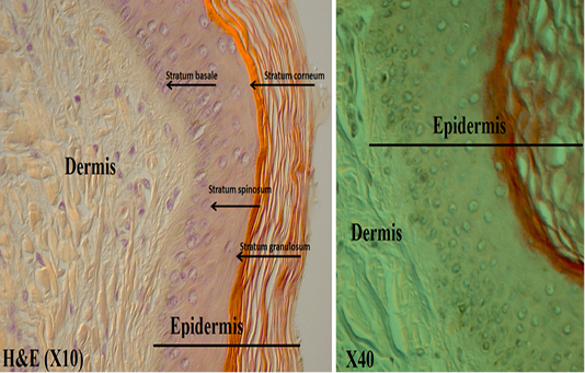 Shows the epidermis layers under DICM