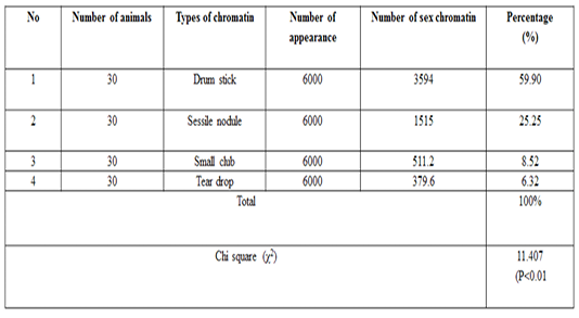 Shows the sex chromatin numbers and percentages of distribution sexual white blood cells (neutrophils) in local Iraqi camel.