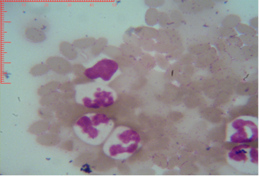 Shows sex chromatin types; small club, the horizontal and vertical dimension measurements in the nucleus of the neutrophils (x1000)