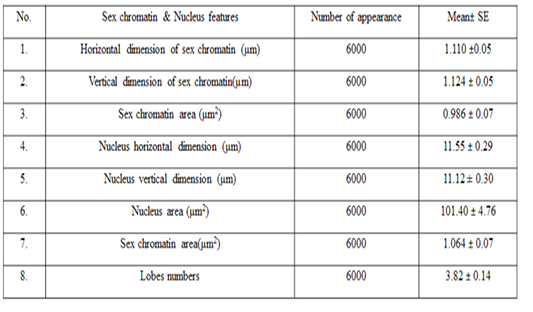 Shows the sex chromatin characteristics and nucleus measurements in the local Iraqi she camels (mean ± SE).