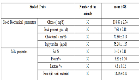 Biochemical parameters and milk recipes studied in the local Iraqi market (general mean ± standard error)