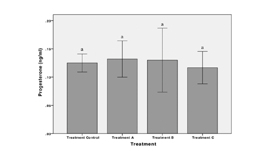 Concentration of progesterone hormone of female Nile Tilapia in each treatment. *The different letters indicate significant differences (p < 0.05).
