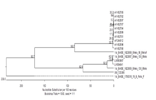 Phylogentic analyses of three sequences obtained from PCR positive sample.