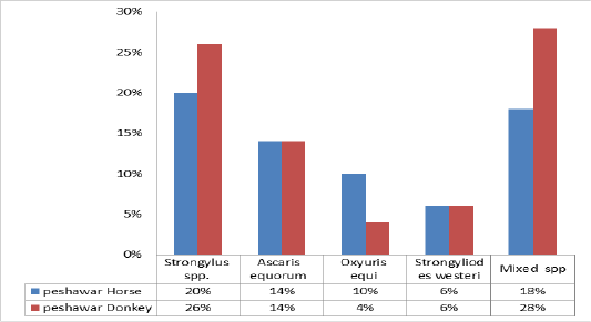 Prevalence of various species of gastrointestinal nematodes in equine of district Peshawar.