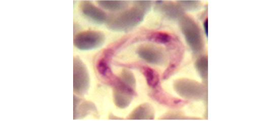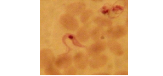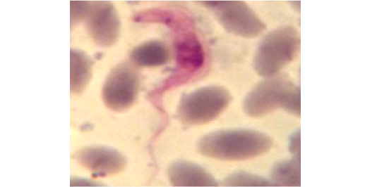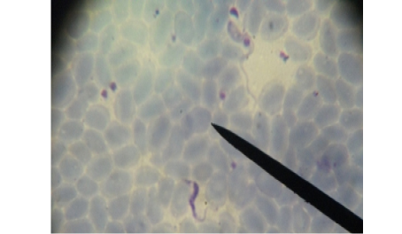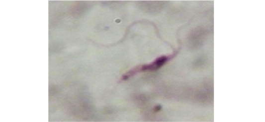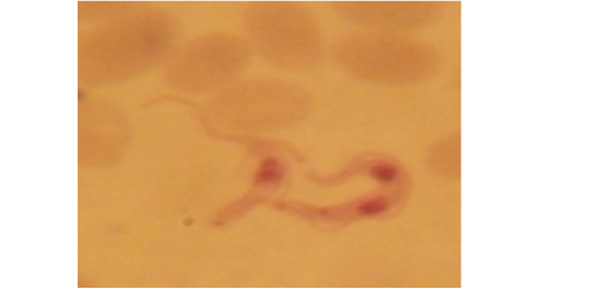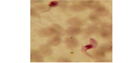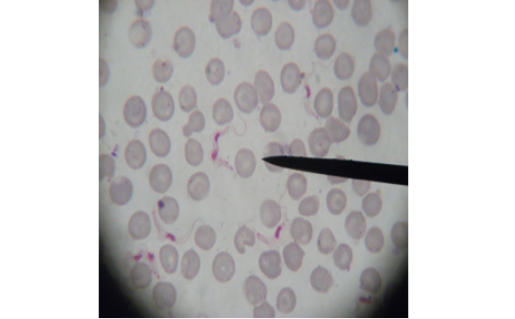 Showing short stumpy form of T. evansi in examined camel (x 1000).