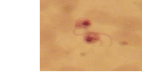 Showing two nuclei of T. evansi in examined camel (x 1000).