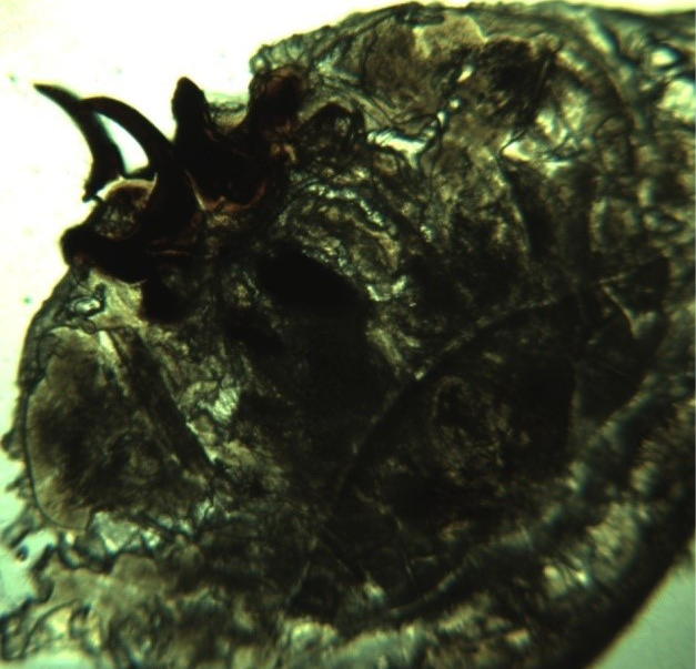 Oral hooks of O. ovis larva (under 4X microscopy)