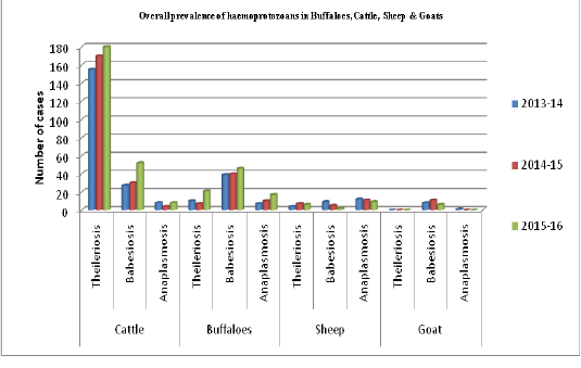 Overall prevalence of haemoprotozoan in Cattle, Buffaloes, Sheep & Goats.
