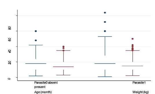 Descriptive statistics of the variables: breed, sex, deworming, region and age